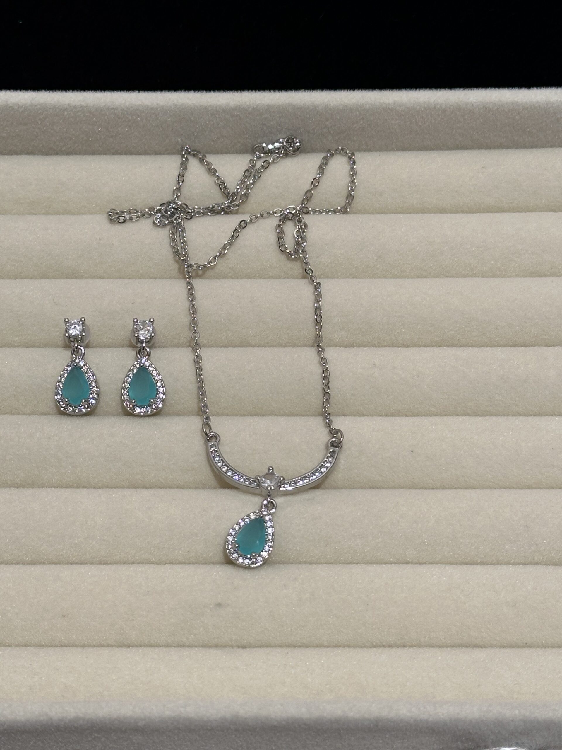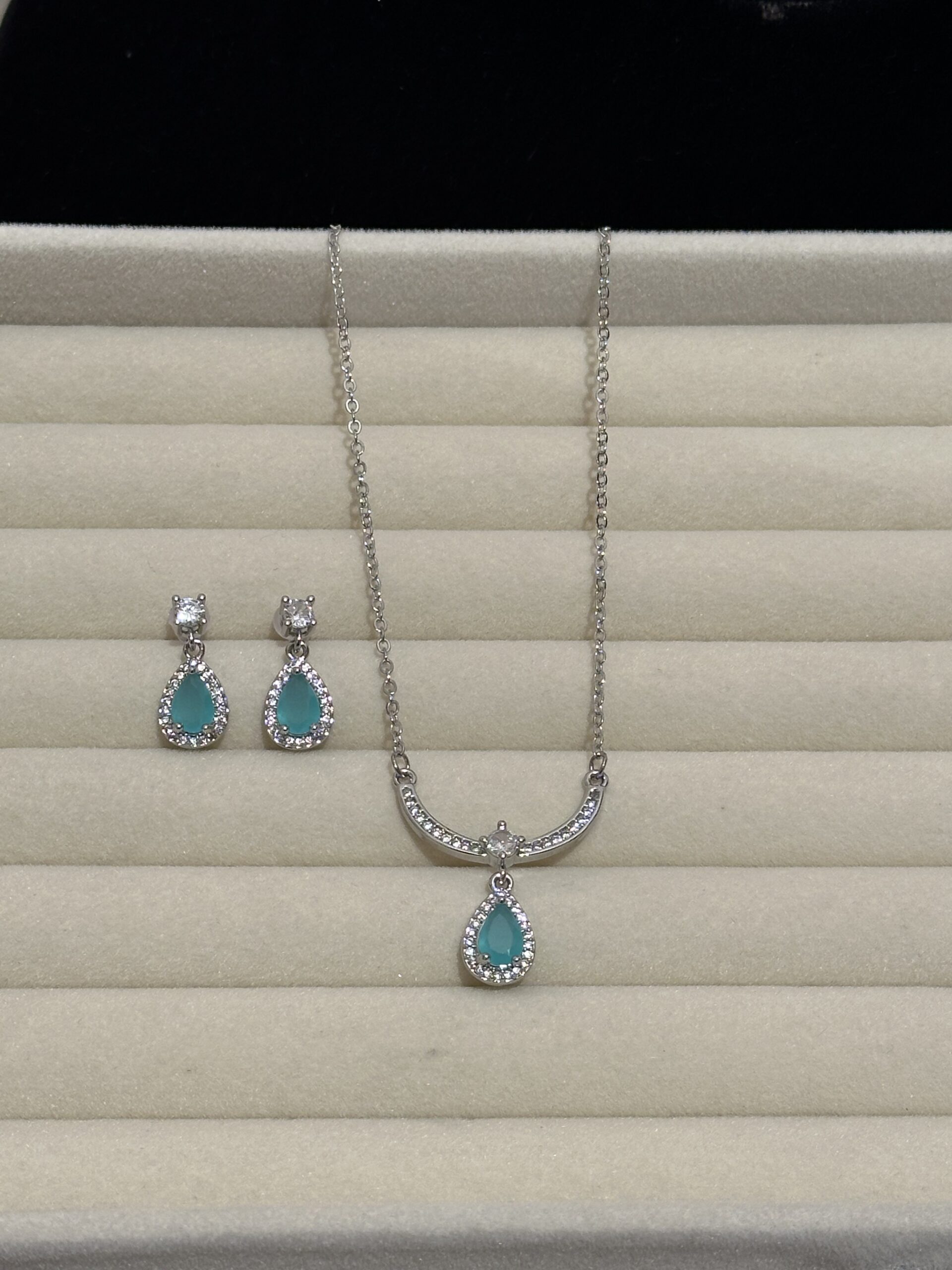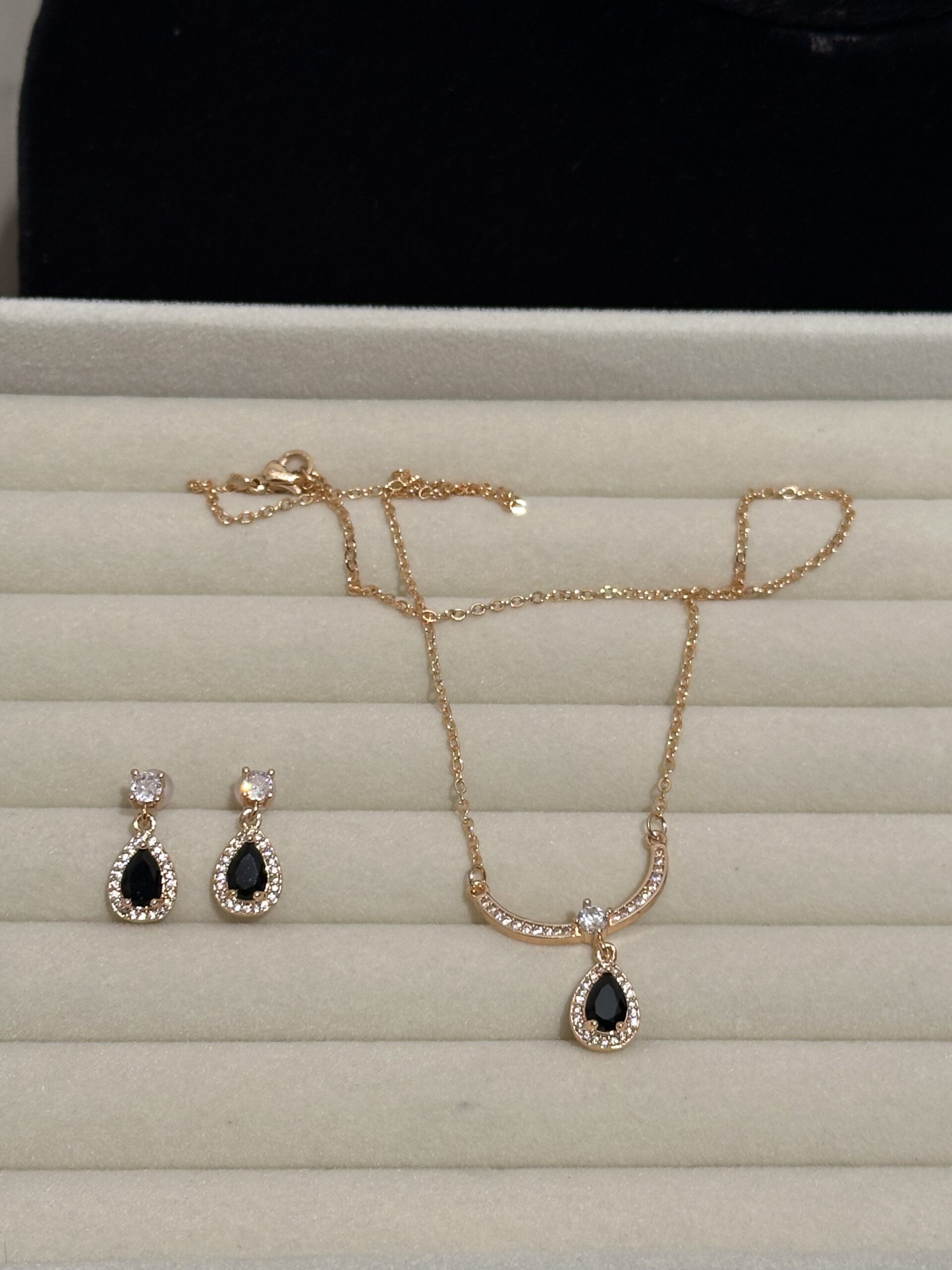 Black stone jewellery set including necklace & earrings, adjustable fit with premium stainless steel quality.