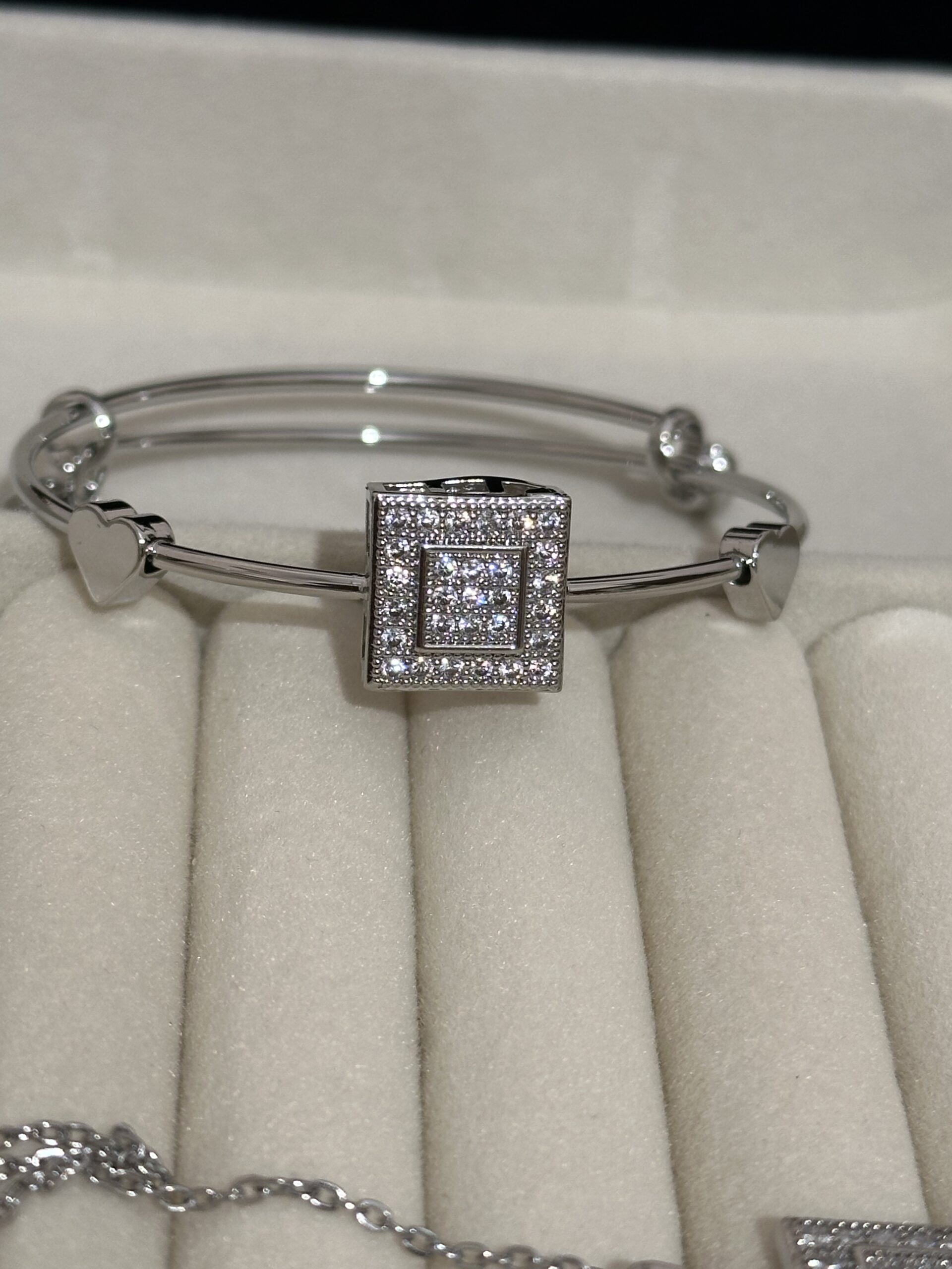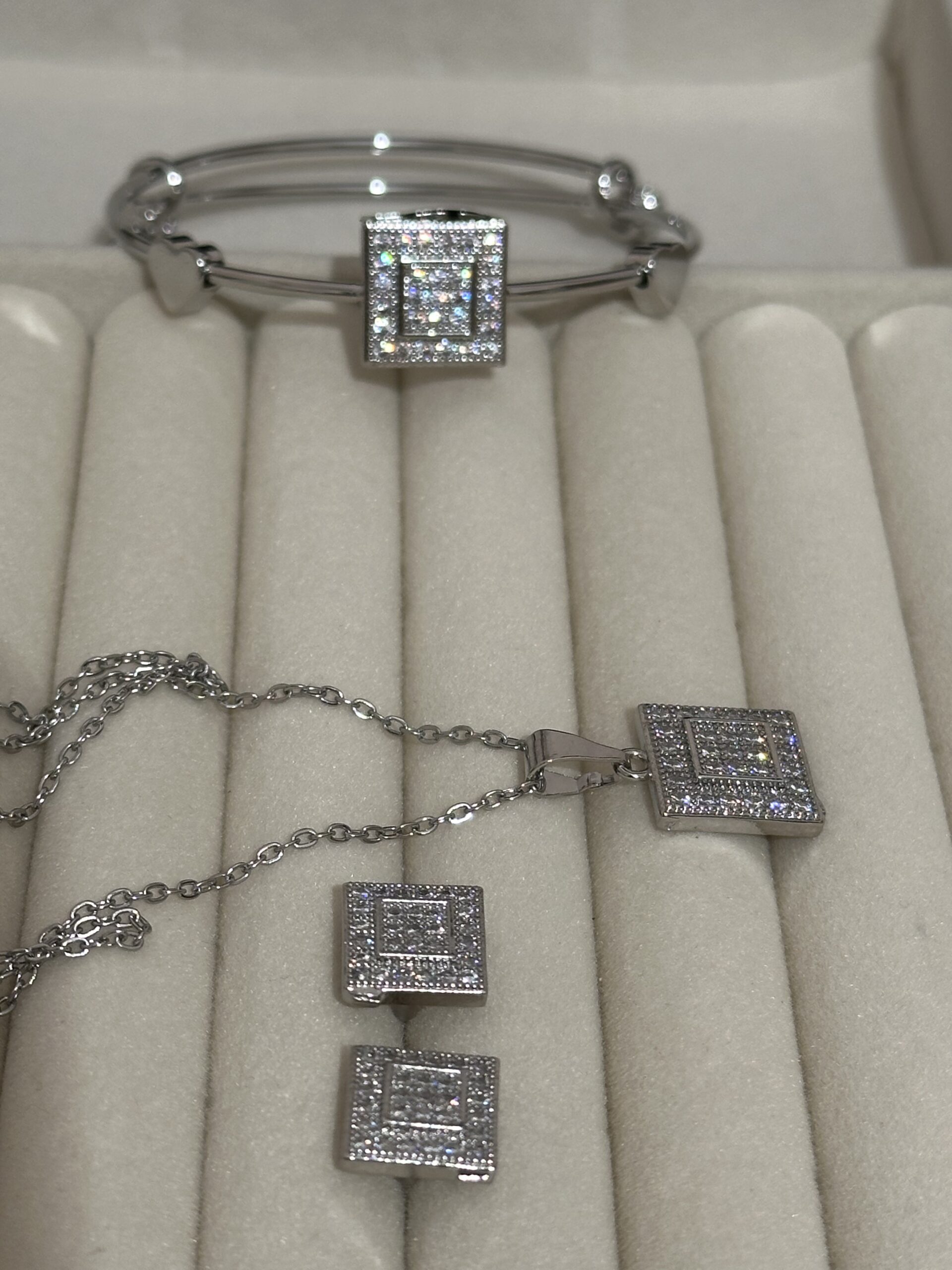 Elegant silver stone set including necklace, bracelet & earrings with premium anti-tarnish finish.