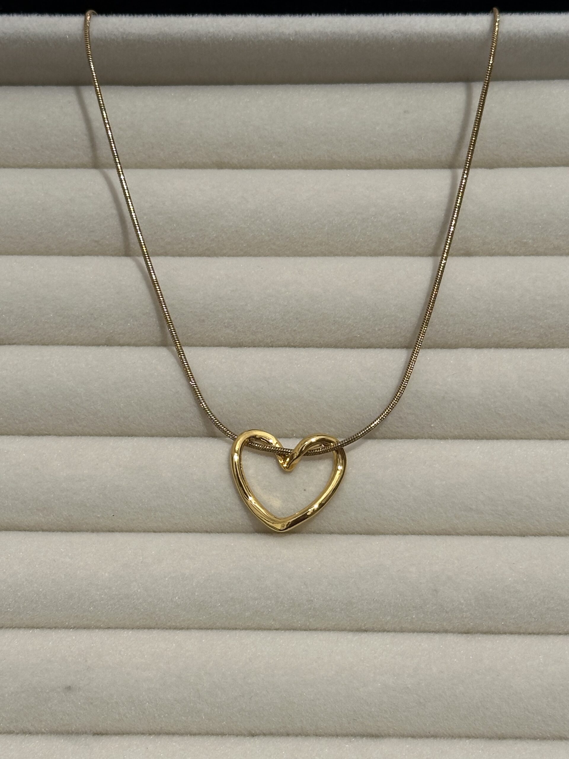 Minimal heart shape chain necklace made from imported stainless steel with anti-tarnish protection.